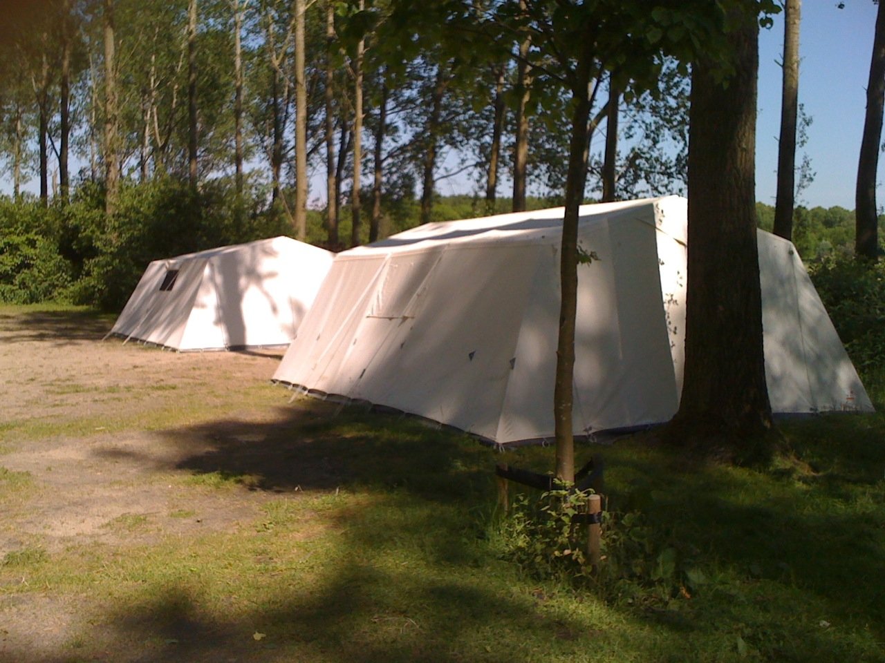Bij een storm zijn onze tenten verwoest, en dit zijn de vervangers. Er zijn er drie beschikbaar. Om te slapen ca. 16 personen en als dagverblijf ca. 30 personen.